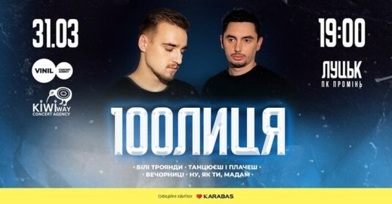 31 березня лютого у РЦ Промінь відбудеться перший великий сольний концерт гурту «100лиця» у Луцьку.