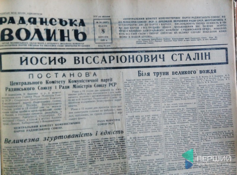Чи не єдиний восьмиберезневий номер «Радянської Волині» без вітань на першій шпальті вийшов у 1953 році, коли помер Йосип Сталін.