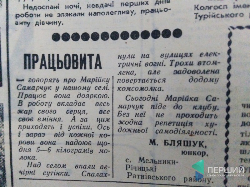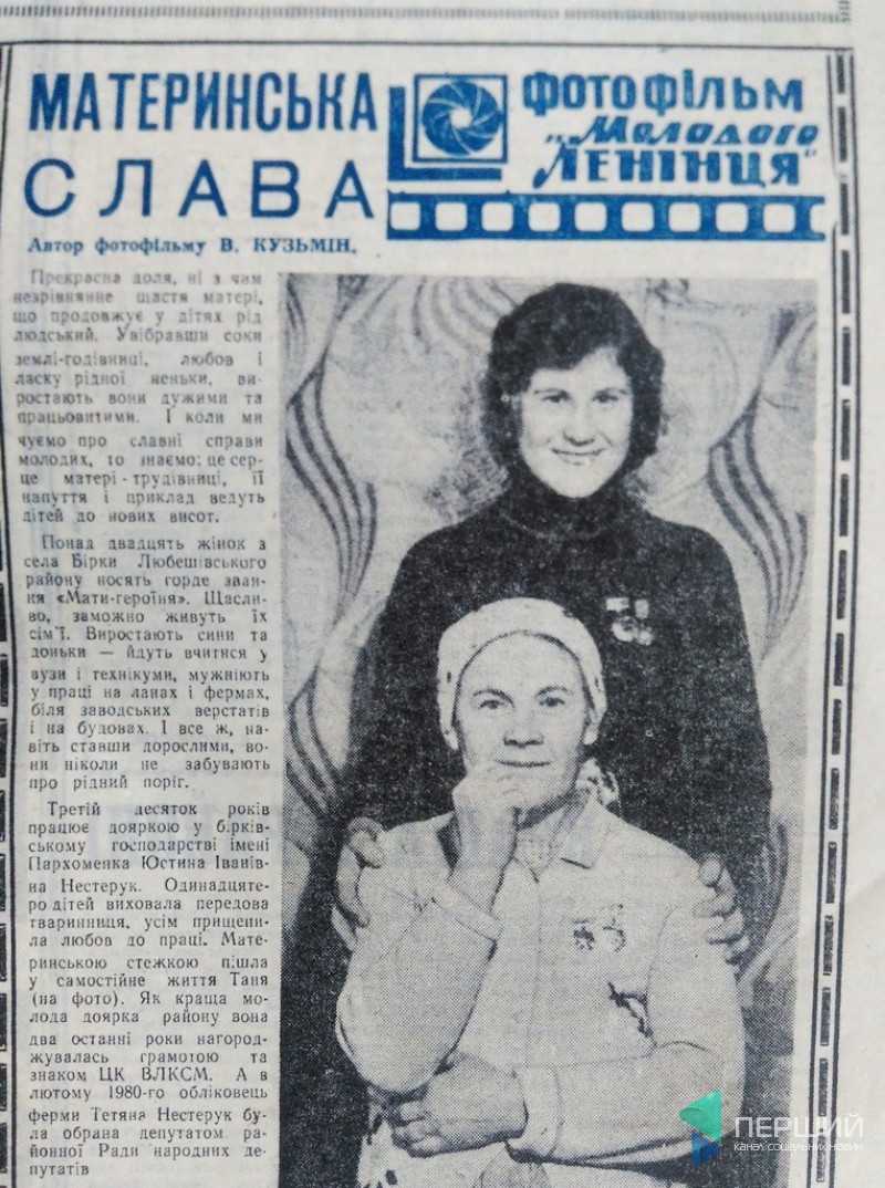 На одній із перших шпальт «Молодого ленінця» за 1980 рік красується фото Юстини Нестерук з Любешівського району, яка народила 11 дітей і отримала звання «Мати-героїня».