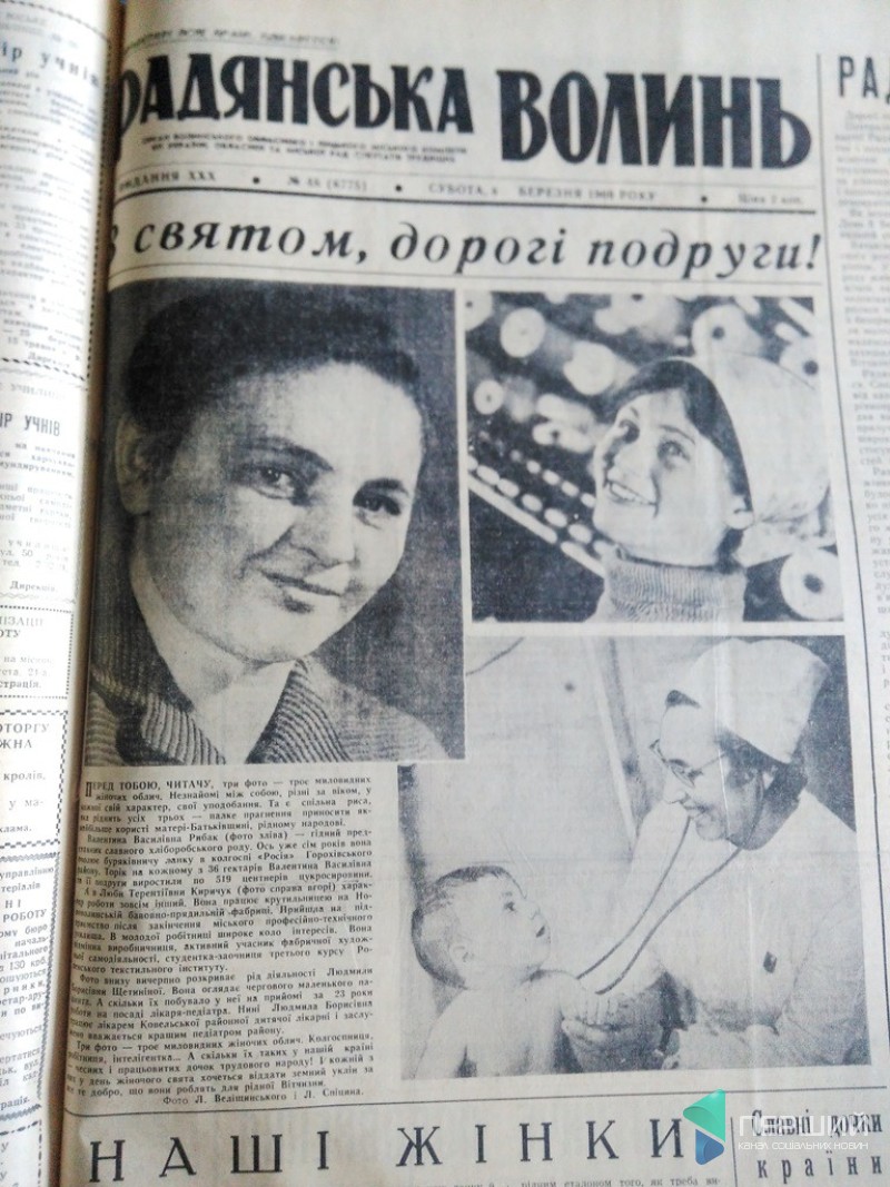 Навіть перші шпальти газет прикрашали собою звичайні волинські «жінки – ударниці». Для прикладу, першу шпальту «Радянської Волині» від 8 березня 1968 року прикрашає фото ланкової Любові Поліщук з Турійського району. «У 1965 році Люба закінчила 8 класів і охоче пішла працювати у колективне господарство, де їй доручили відповідальну посаду доярки…»