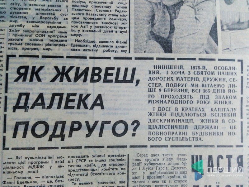 «Слід зважити, що у величезній більшості держав, де все ще панує капітал, жінки досі перебувають у залежному, підлеглому становищі», - читали волинянки в матеріалі «Два світи – дві долі» на першій шпальті «Молодого ленінця» 8 березня 1975 року.