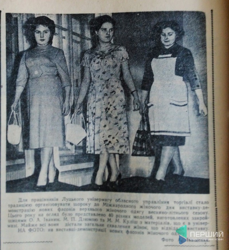 Загалом в «Радянській Волині», в 60-х роках на 8 березня частенько можна було зустріти небагатослівні репортажі з Луцького універмагу, що на вулиці Леніна (теперішній проспект Волі), де традиційно до жіночого свята проводили щорічні демонстрації жіночого та дитячого одягу.
