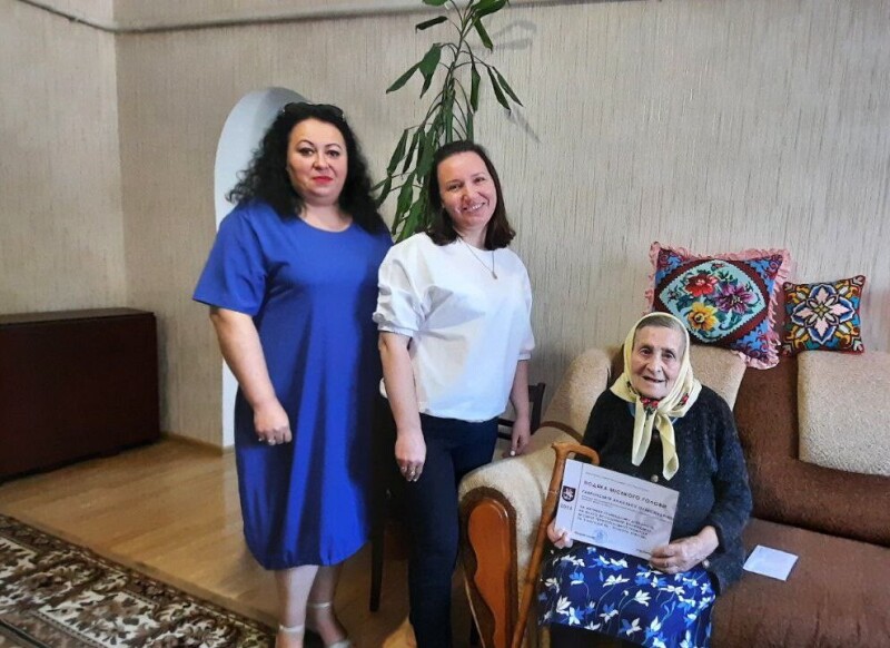 Аби привітати з поважним ювілеєм до іменинниці завітали заступник начальника управління соціальної політики Алла Кузьмич та директор територіального центру соціального обслуговування Інна Мацьоха, повідомили у міськраді.