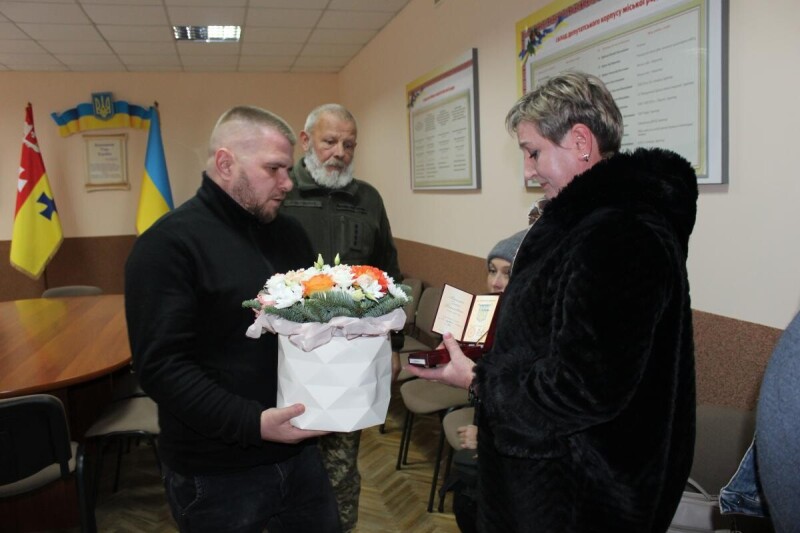 Представники Другого відділу Луцького районного територіального центру комплектування та соціальної підтримки та заступник міського голови з питань діяльності виконавчих органів Рожищенської міської ради Сергій Лясковський передали нагороду дружині загиблого Героя.