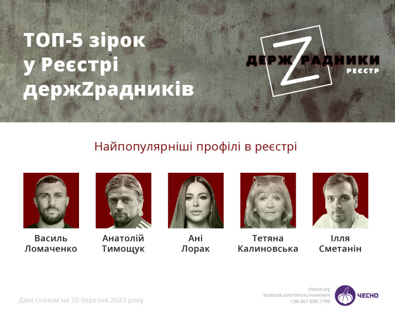 За рік функціонування Реєстр ДержZрадників відвідало понад 1,6 млн осіб. Однією з найпопулярніших категорій виявились зірки — спортсмени, артисти, співаки та діячі культури. Як і медійники, які також є в реєстрі, завдяки своїй впізнаваності вони можуть спробувати себе на виборах або підтримувати інших кандидатів.