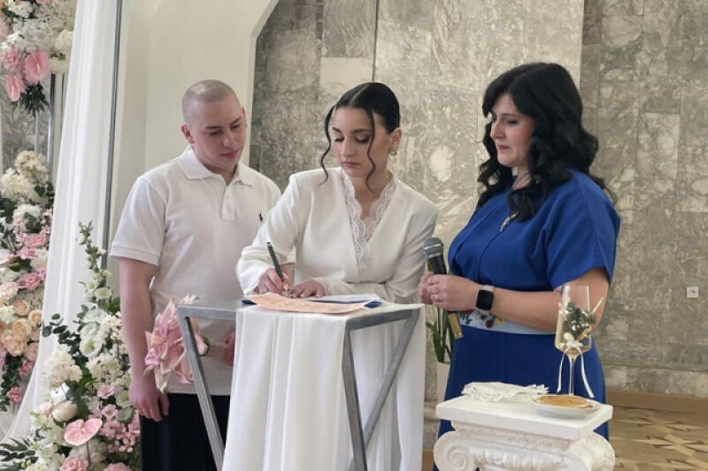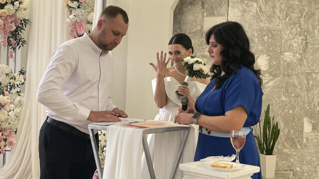 «Просто така гарна дата. Довелося почекати трохи, півтора місяця, щоб саме сьогодні розписатися», – розповіли молодята.