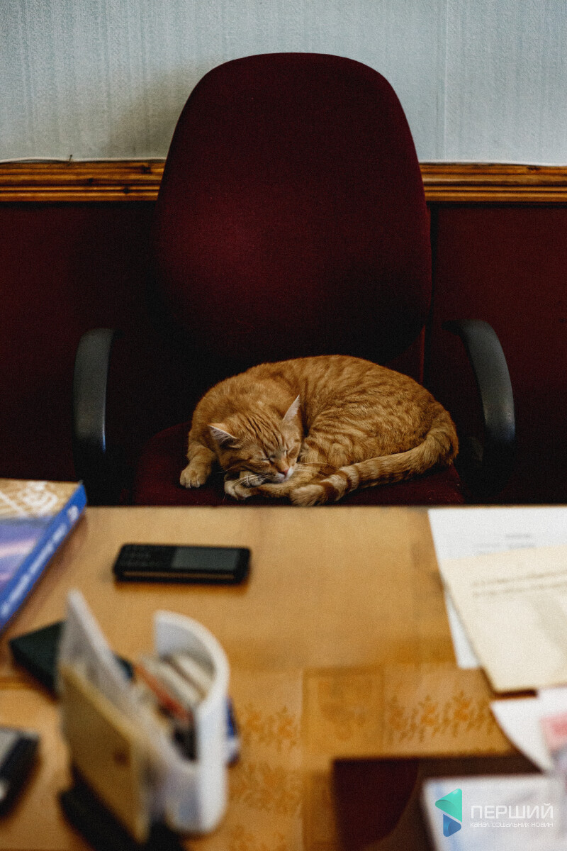 …Заходиш у кабінет художнього керівника Волинського народного хору Олександра Стадника. За столом Олександра Олександровича – «шефське» крісло. Добротніше таке, з ручками, м’якою спинкою… У ньому спить… ні, не шеф) Там розлігся кіт Філя. Рудий, добротний, як те крісло)) Поруч за столом стоїть ще один скромний стільчик. То Олександр Стадник поставив собі, щоби і за столом попрацювати, і Філю де не потривожити…