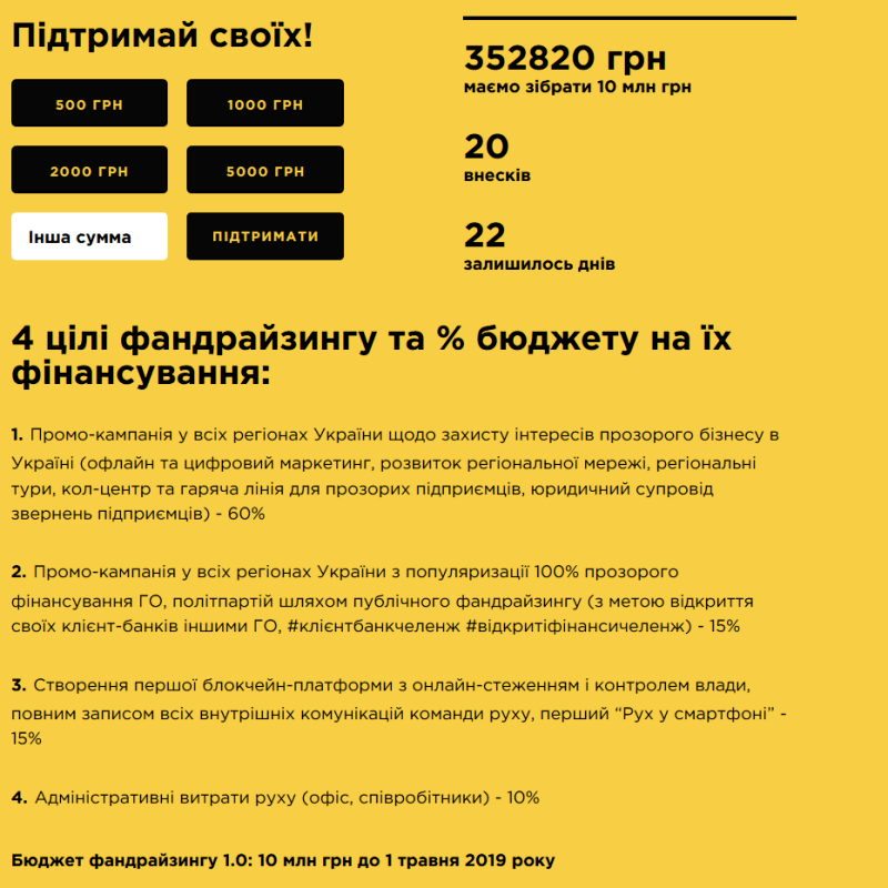 Тим не менш, станом на 9 квітня на офіційному сайті руху вже оголосили публічний збір коштів.