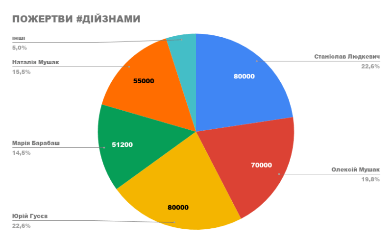 Решту коштів - 175 тясяч 20 грн – дрібні пожертви менше 2000 гривень через систему LiqPay.