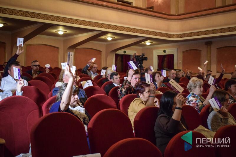 18-та година 18 вересня. За кілька хвилин до початку в «Просвіті» з’являється одна з лідерів партії та керівниця облосередку Ірина Констанкевич. З цікавого: у фіолетовому піджаку, в тон партійним барвам. Тут же і без кількох хвилин кандидат на посаду мера Луцька Ігор Поліщук. Поруч із ним місце у залі будинку культури займає бізнесмен Андрій Разумовський. Серед присутніх – депутат Луцькради Євгеній Ткачук, його колеги і укропівці з Луцькради Микола Дендібєрін, Борис Смаль, Петро Бойко, Сергій Савчук, Юлія Дацюк, Тетяна Янчук та інші. Окремі депутати обласної ради, партійці.