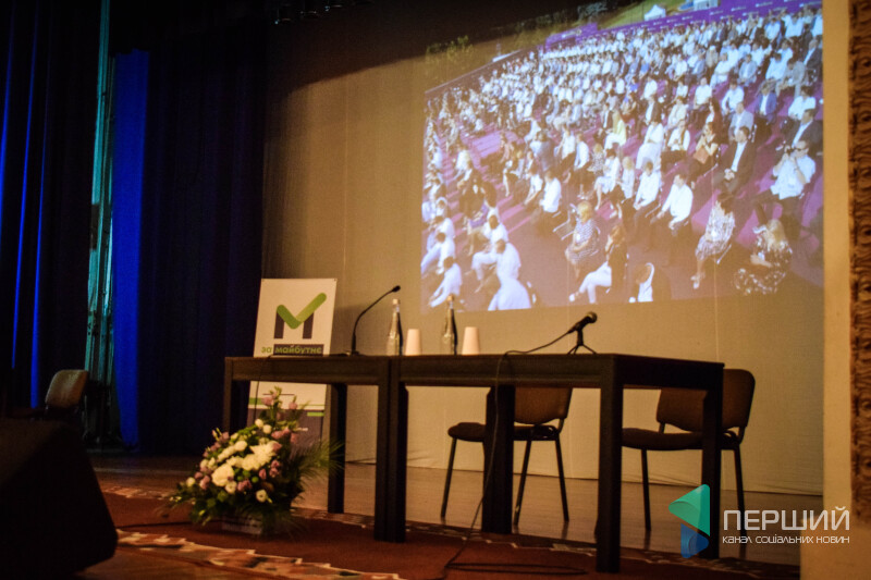 Після оргмоментів, обрання лічильної комісії приступають до головного. У президії на сцені, за столом, біля підніжжя якого букет білих та фіолетових квітів, - член ради облосередку партії «ЗА Майбутнє» Орест Маховський, Ірина Констанкевич та депутат Луцькради Борис Смаль.