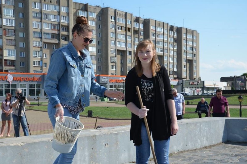 Близько півсотні працівників облдержадміністрації вийшли на Київський майдан, аби прибрати навколо непрацюючого фонтану.