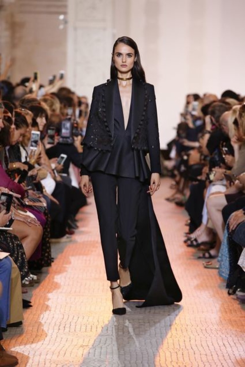 Почнемо з того, що Елі представив не лише сукні, а й брюки в тандемі з неймовірними шлейфами. Нашиті блискітки, величезні волани, драпіровка та різного роду нашивки — неможливо відвести погляд. Радимо вам переконатись у цьому.