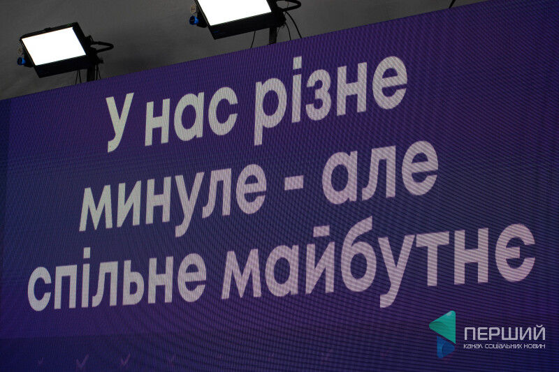 «Саме тут 591 рік тому зібралися європейські монархи на перший у світовій історії саміт задля об’єднання Європи...» - лунає зі сцени. Потім кажуть, що саме тут партія «ЗА Майбутнє» розпочинає гуртувати небайдужих і професійних волинян. Державний Гімн.