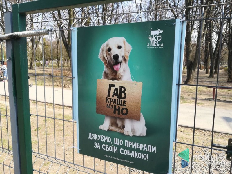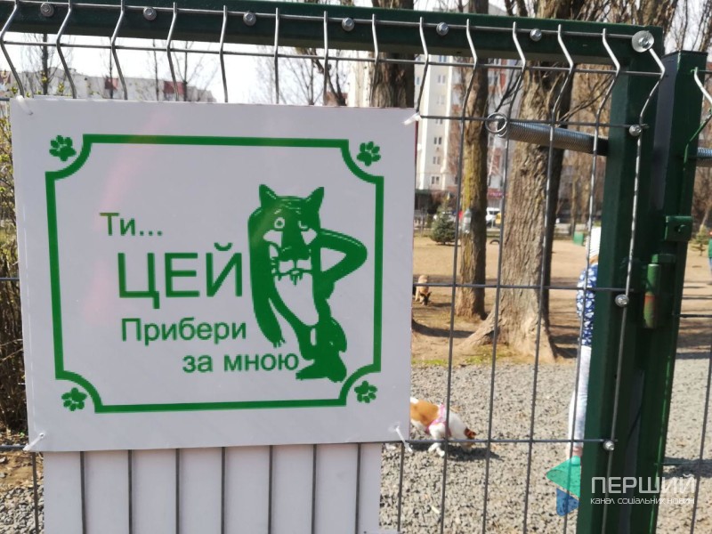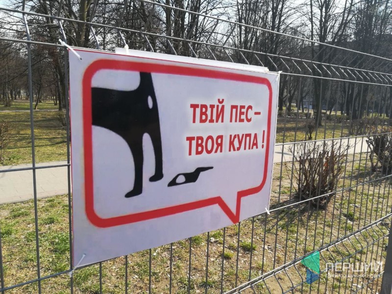 Майданчик для вигулу собак у сквері за луцьким РАЦСом обладнали табличками, які закликають прибирати екскременти своїх тварин.