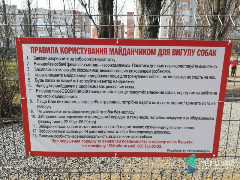 Цікаво, що власники собак, які вигулюють їх на майданчику, щомісяця скидаються грошима на його утримання. Тут  встановили інформаційний стенд, поставили лавку, кілька тренажерів для собак, а також постійно купують поліетиленові мішки для прибирання за тваринами.
