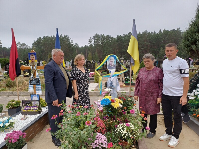 Маневицький селищний голова Олександр Гаврилюк і старший офіцер Першого відділення Камінь-Каширського районного територіального центру комплектації та соціальної підтримки Олександр Антонюк подякували за відвагу і сміливість українського захисника та вручили державну відзнаку мамі Вірі Андріївні та родині.