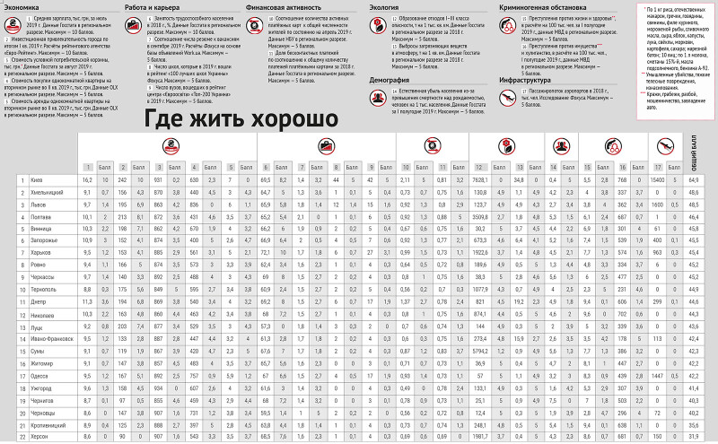 Він складається із двох частин. Перша – об’єктивна оцінка комфортності українських міст за 17 параметрами, отриманими з відкритих даних. Друга – суб’єктивний опис переваг і недоліків міста його уродженцями. У деяких випадках об’єктивна і суб’єктивна оцінки відрізняються.
