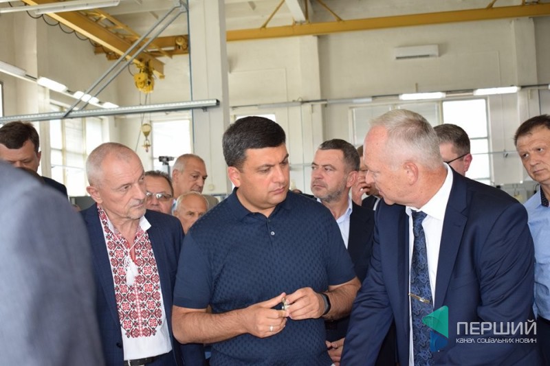 Наразі Володимир Гройсман завітав на завод «Мотор». Прем’єра супроводжують голова Волинської ОДА Олександр Савченко та очільник ДП «Луцький ремонтний завод «Мотор» Володимир Маракулін.
