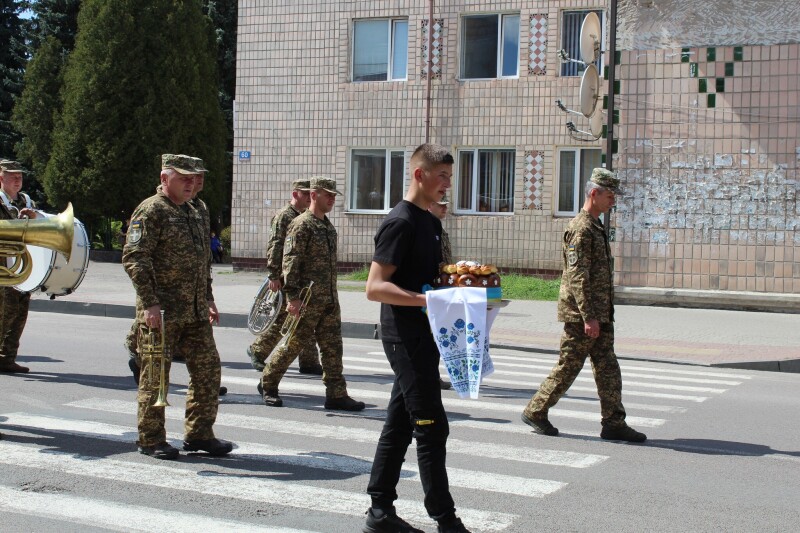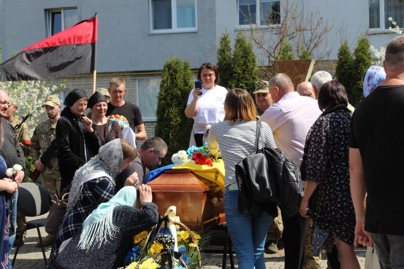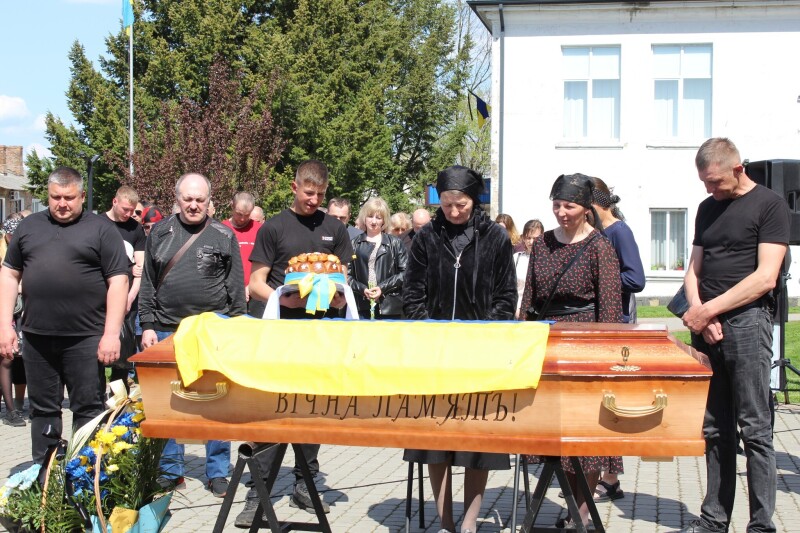 Під звуки військового оркестру загиблого Василя Харчука провадять до місця останнього спочинку. У голові траурної процесії – весільний хліб на вишиваному рушнику як символ того, що війна обірвала життя Героя на межі незавершених планів та життєвих мрій.