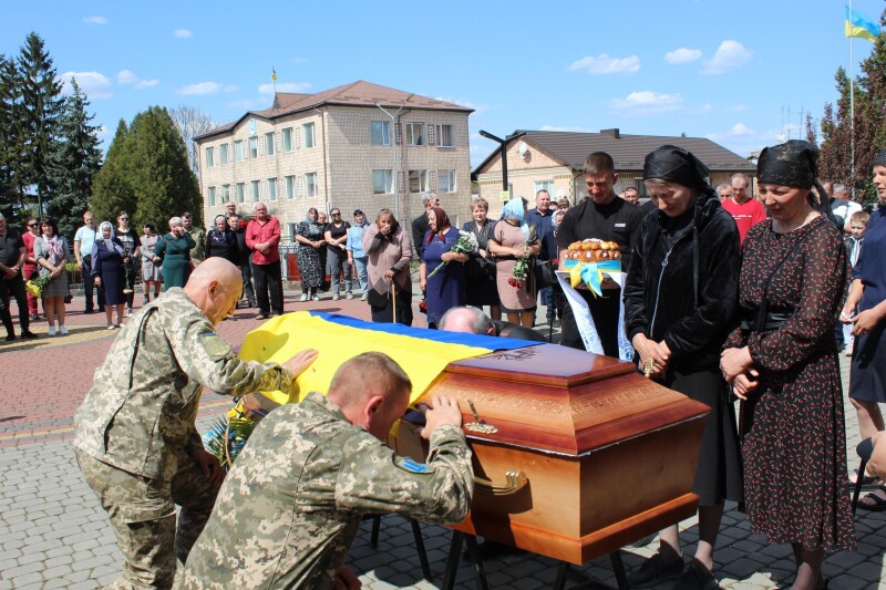 Поховали Василя Харчука під залпи почесної варти та Державний Гімн України на сільському кладовищі. А синьо-жовтий стяг, який огортав домовину, військові передали мамі загиблого як символ незалежної України, за яку боровся та віддав життя її син.