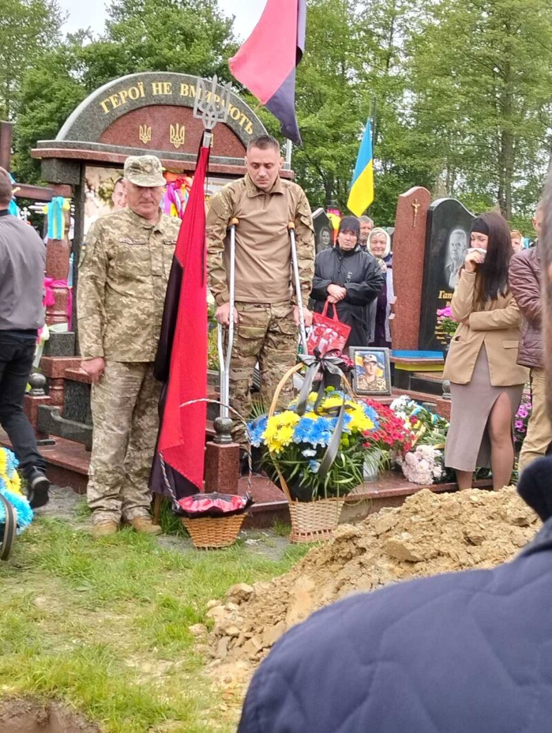 Під звуки Державного Гімну, виконаного військовим оркестром, і залпи почесних пострілів, тіло Героя було поховано.