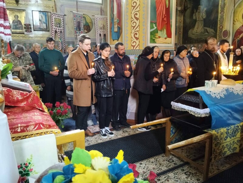 Рідні, священнослужителі, односельчани та побратими разом молилися за упокій душі загиблого Героя.