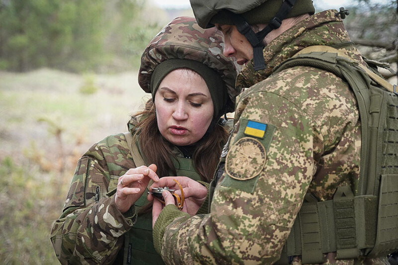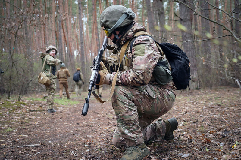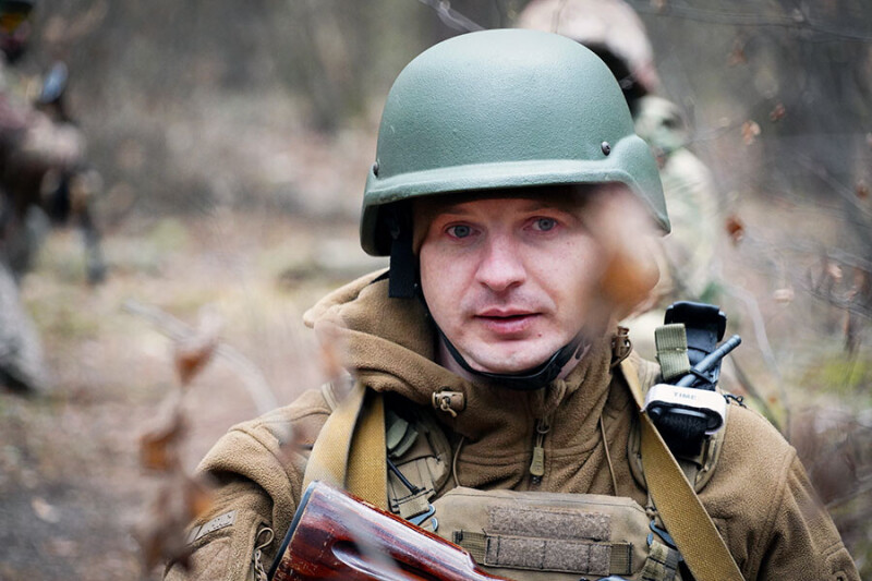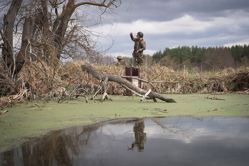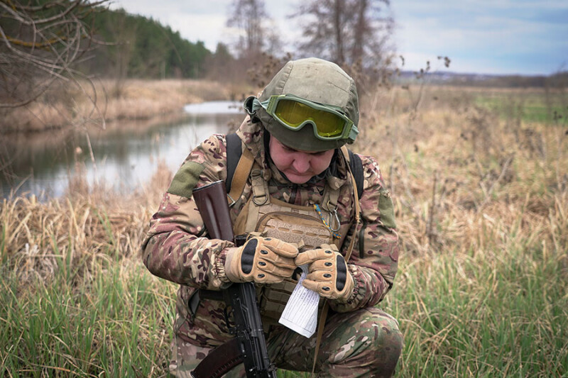 «На дві проблемні точки вийшли достатньо рівно. По часових показниках група рухається дуже швидко. За дві години пройшли дев’ять точок. Переправу подолали швидко, і без втрат особового складу та амуніції. Загалом вони мають пройти 15 точок, попереду ще купа проблемних ділянок. Під час руху застосовуємо імітаційні засоби — піротехнічні гранати. Чесно кажучи, ця група дуже свідомо підійшла до виконання завдання, поставилася до нього, як до бойового», — коментує головний сержант Східного Харківського територіального управління Максим Кісельов.