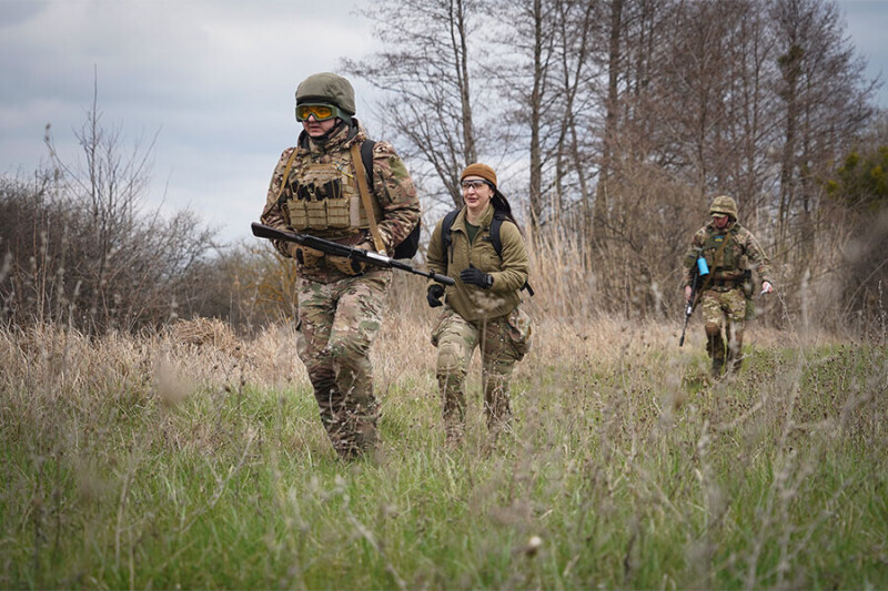«Дотримуємось тиші, комунікацію здійснюємо знаками, тому не розтягуємося сильно, бо ми маємо бачити одне одного та дублювати команди. Скупчення також уникаємо. Дистанція між нами 10-15 метрів. Відкриті місцевості долаємо якомога швидше. Контролюємо кожен свій сектор та небезпечні напрямки», — дає настанови перед маршем головний сержант підрозділу Катерина.