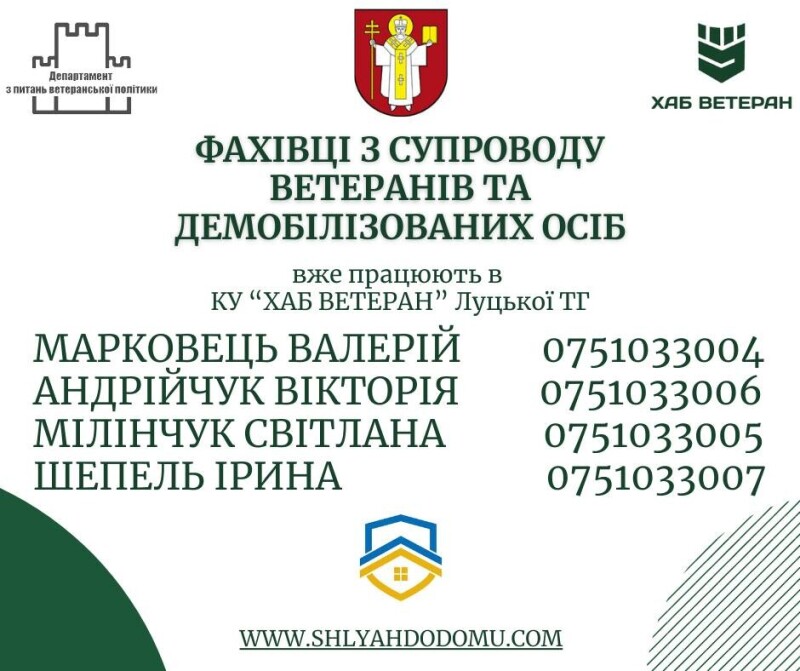 В Луцькій міській територіальній громаді в КУ «ХАБ ВЕТЕРАН» вже приступили до роботи Фахівці із супроводу ветеранів війни та демобілізованих осіб.