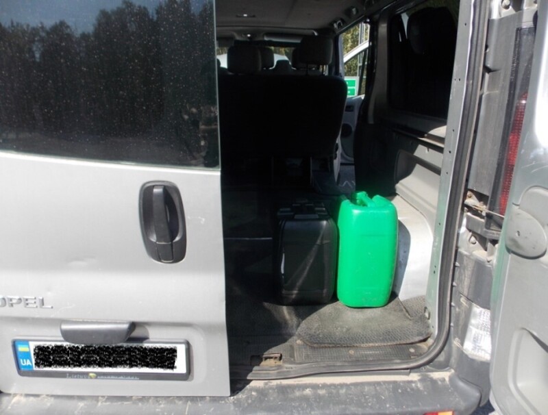 У пластиковій каністрі та в подушці на задньому сидінні автомобіля виявили 350 пачок цигарок марки «Мінськ». Тютюнові вироби передали митникам. Сума оцінки цигарок становить майже 2,6 тисячі гривень.