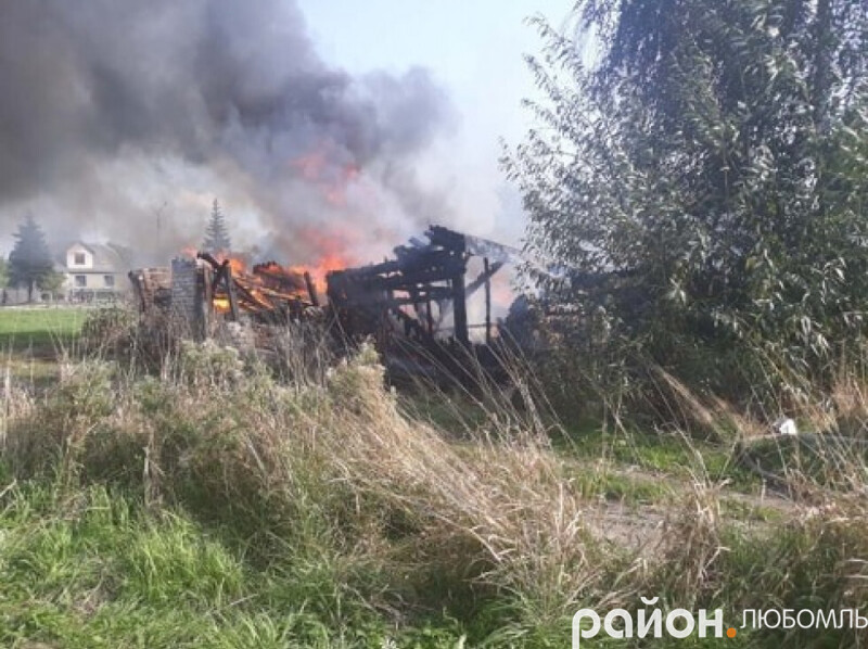 Згодом виникла пожежа двох господарчих споруд у Любомлі по вулиці Євгена Коновальця. Вогонь знищив господарчі споруди, речі домашнього вжитку, автомобільні запчастини.