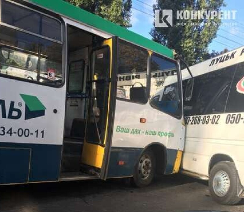 У Луцьку зіткнулися два автобуси: міська 31-ша маршрутка і автобус компанії пасажирських перевезень «Луцьк Експрес». Аварія сталася зранку у суботу, 14 вересня, неподалік ТЦ «Глобус» ближче до повороту на вулицю Кравчука. Обидва транспорти отримали механічні ушкодження.