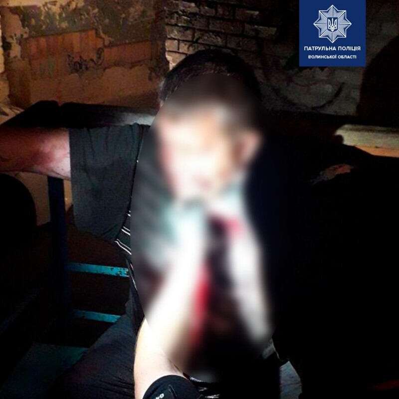 У ніч на 2 липня на проспекті Молоді в Луцьку один чоловік поранив іншого ножем. «У невідомої особи дірка в шиї, вона стікає кров’ю», – таке повідомлення отримали патрульні. Інспектор, побачивши чоловіка з сильною кровотечою, надав йому домедичну допомогу, закрив рану та притримував громадянина до прибуття медиків. Жодних подробиць, за яких обставин з ним таке сталось, той сказати не міг. Згодом поліцейські виявили чоловіка, який міг бути причетний до інциденту. Біля нього був ніж із плямами крові.