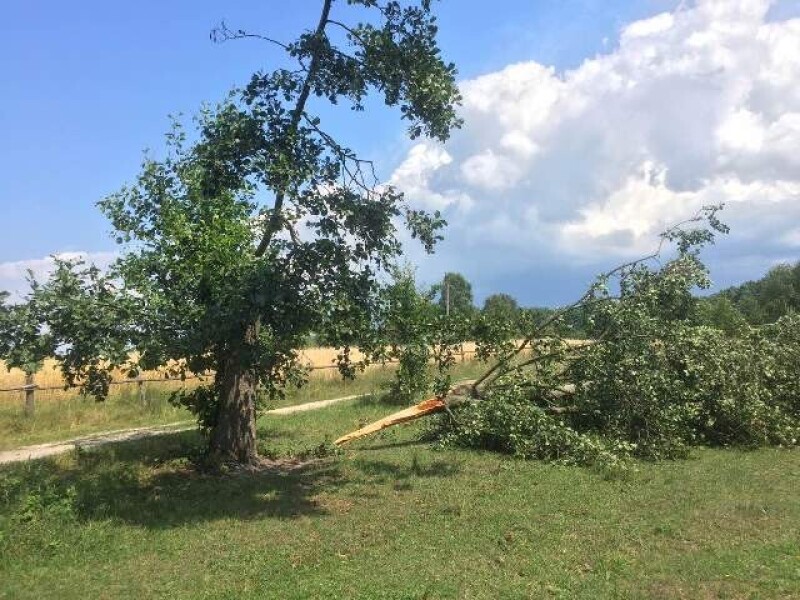 Близько 18-ї години 1 липня сильний вітер буквально за кілька хвилин поламав дерева, пообривав лінії електропередач і навіть познімав шифер із покрівель на Любешівщині. Керівник Любешівської філії ПрАТ «Волиньобленерго» Віталій Боснюк зазначив, що в ряді населених пунктів були стійкі пошкодження, і необхідно було провести комплекс робіт для відновлення електропостачання. Тож цілу ніч до 5-ї ранку ліквідовували обриви, проводили перемикання на резервні схеми живлення, аби люди отримали світло. Удень роботи продовжили, крім того, надходили нові повідомлення про знеструмлення. У Любешові найбільше постраждала вулиця та провулок Пушкіна. Тут дерево обірвало електролінію й проводи, по яких здійснювався інтернетзв’язок, та перекрило дорогу. Подібне спостерігалося і в центрі села Судче. Така ж ситуація була і в Дольську та Люб’язі. Крім того, в Люб’язі старий ясен упав на хату, господар якої немісцевий, тому в домі ніхто не живе. Дещо розкрило дахи школи та спортзалу, але швидко їх перекрили.