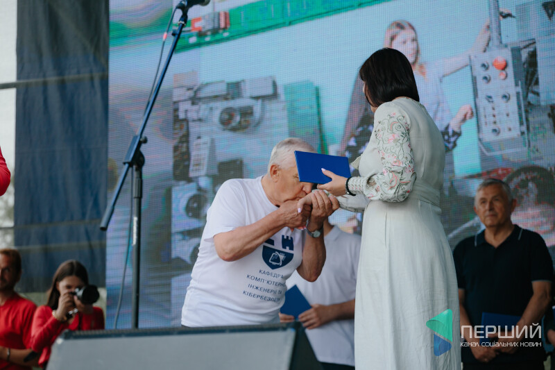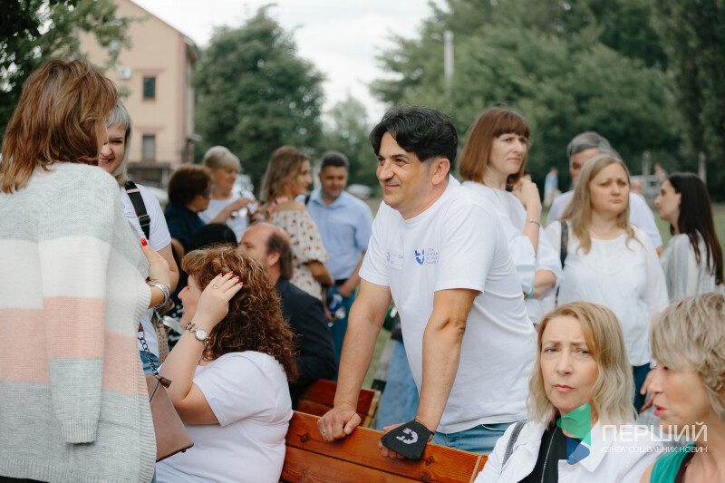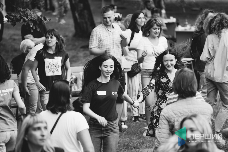 Сміялася і говорила про сімейну атмосферу, яку дуже хочуть повернути у цей вуз, саме тому й організували подібне дійство просто на траві посеред неба.