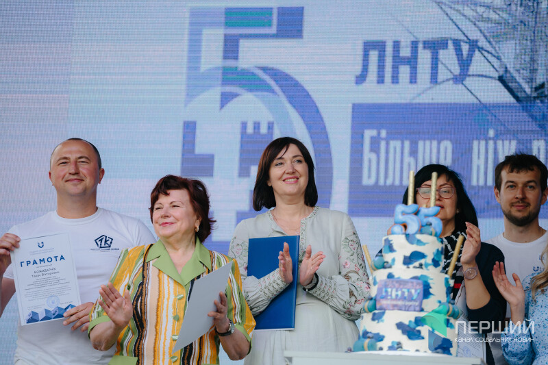 У фіналі був розкішний торт з гаслом, яке закликає вступати до вузу з багатьох білбордів на Волині «ЛНТУ – твій полюс росту».