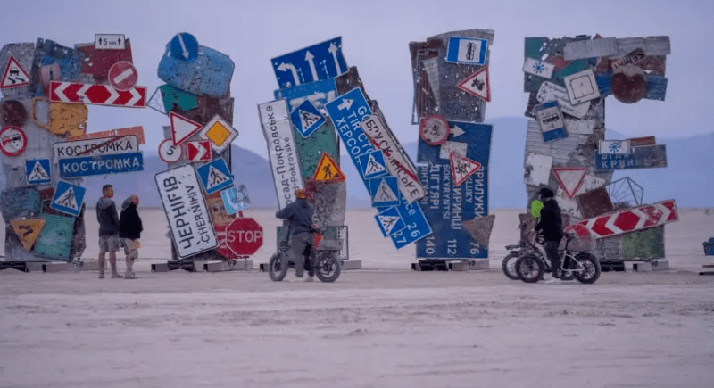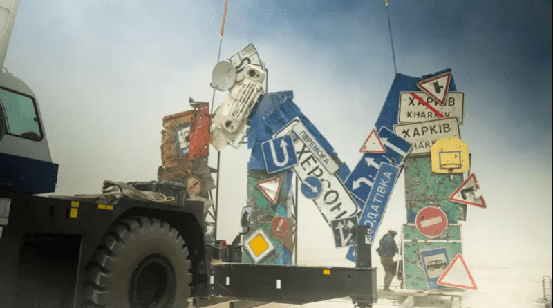 Величезна інсталяція "I'm fine;)" з артефактів війни, які зібрали на деокупованій території, представляє Україну на всесвітньовідомому фестивалі сучасного мистецтва Burning Man 2024 у пустелі Блек-Рок у США.