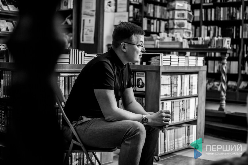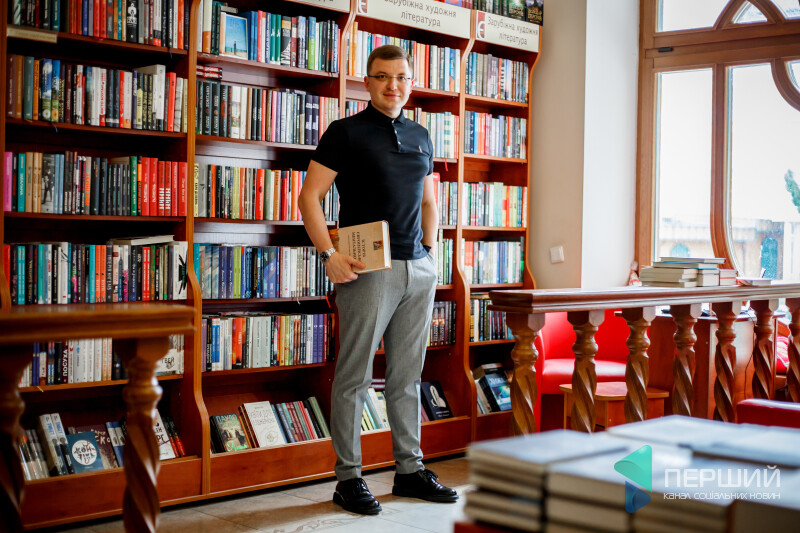 (Тарас Шкітер приходить вчасно. Як завжди – бездоганно виглядає. В гарному настрої. В цій луцькій Книгарні Є – точно не вперше. Одразу дивиться, що нового…)