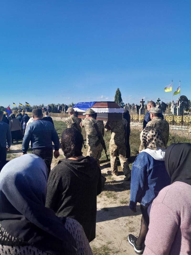 Після молитви траурна процесія рушила до місця вічного спочинку, а жителі громади вийшли на вулиці, утворивши живий коридор шани для захисника.