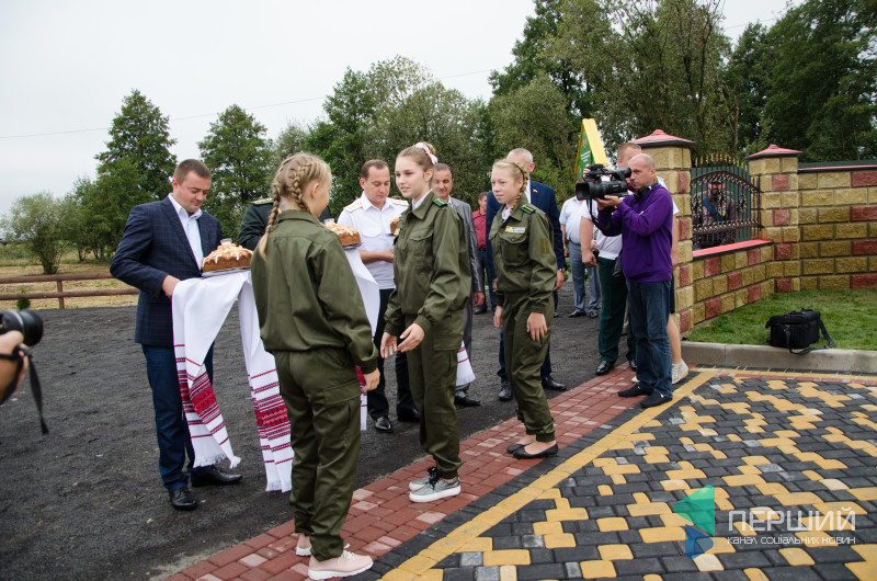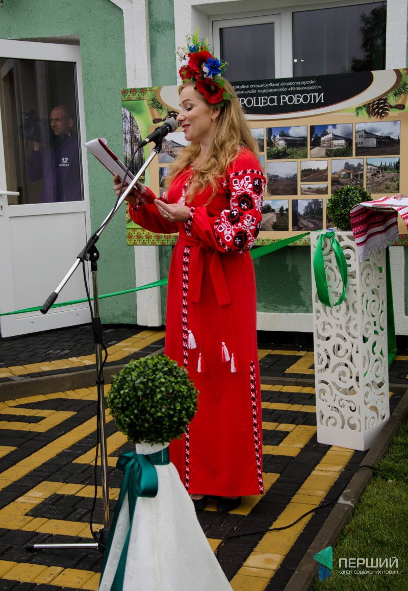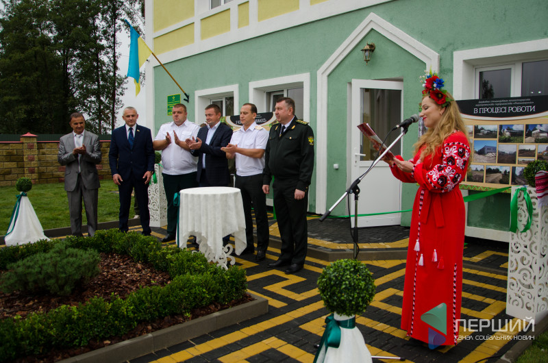 Зайшовши на територію нової адмінбудівлі, учні Заболотівської школи лісівників вручили високопосадовцям хліб. Опісля відбулося урочисте відкриття контори.