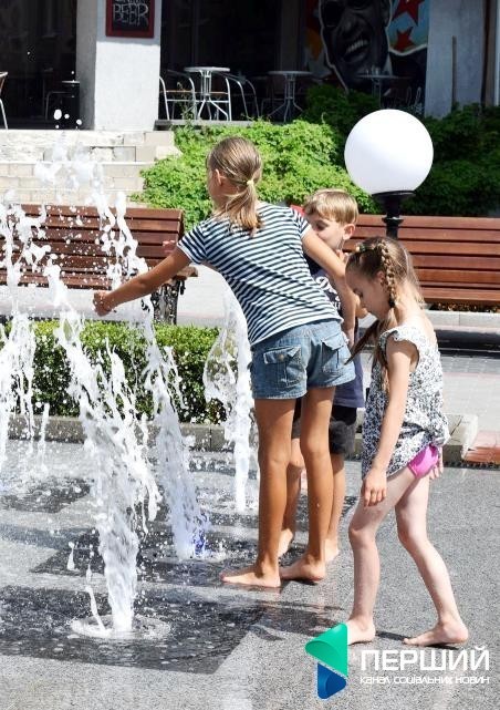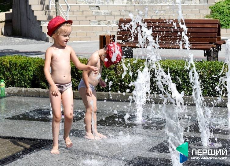 У місті досі спекотно. Найменші лучани, не соромлячись, продовжують купатися та гратися у міських фонтанах.
