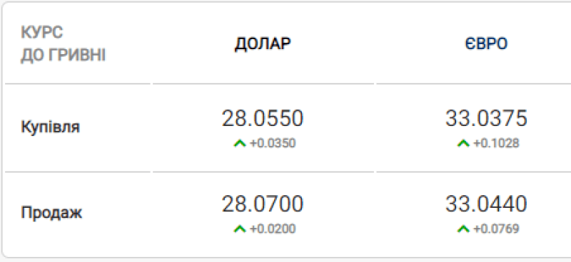 Курс євро виріс на 22 копійки та становить 33,02 грн/€.