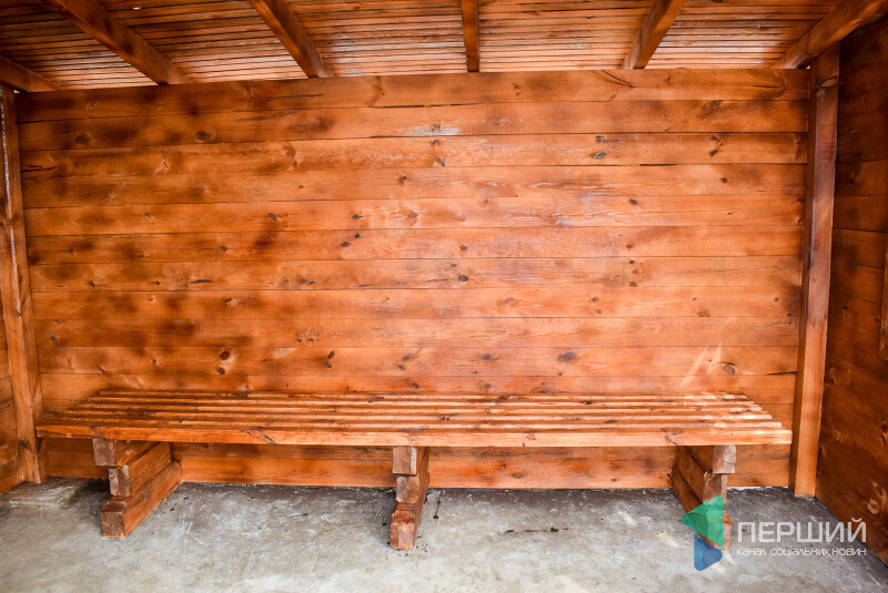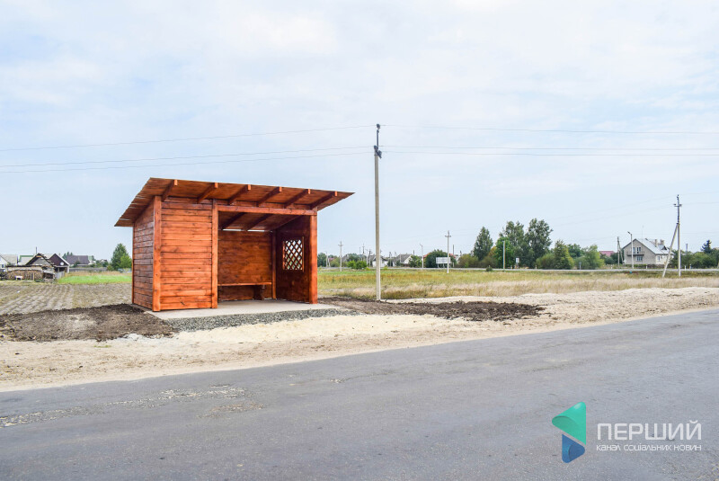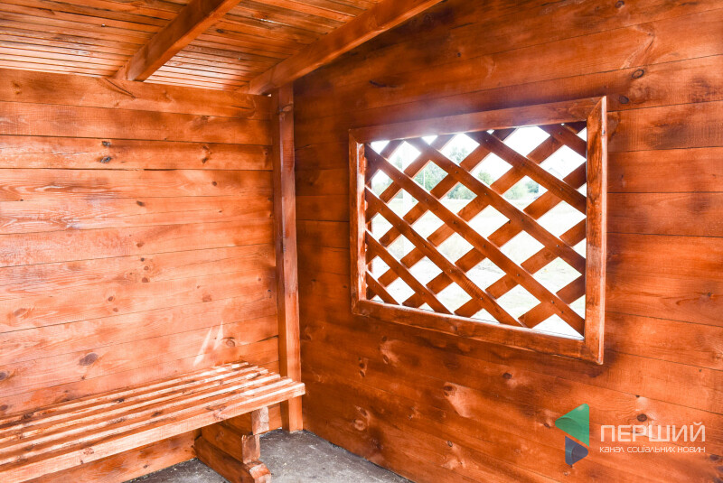 Зупинка виготовлена із деревини, а біля неї невдовзі зроблять ще тверде дорожне покриття.