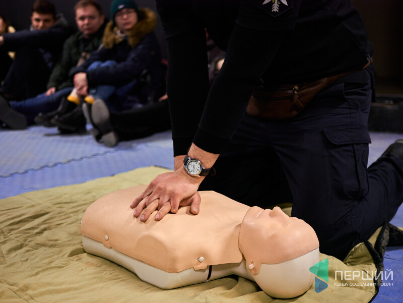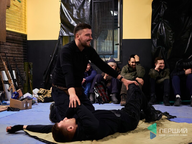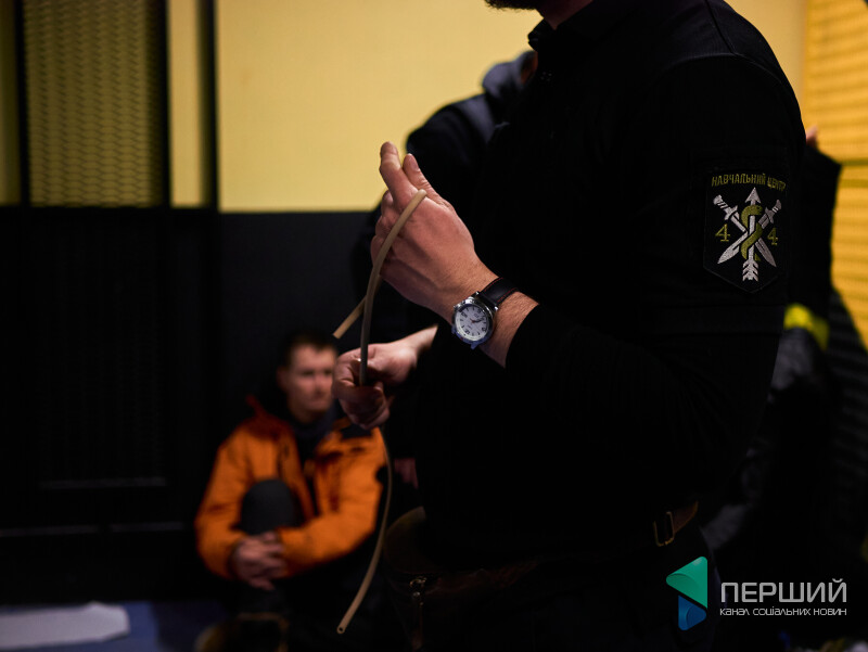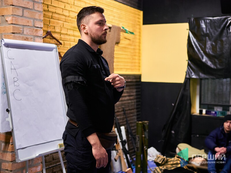 Друга частина навчань – основи тактичної медицини. Інструктор та лікар Тарас Мороз пояснює не лише, як зупиняти кровотечі і проводити серцево-легеневу реанімацію, а й наскільки це реально на полі бою. Як допомогти і при цьому не загинути самому.
