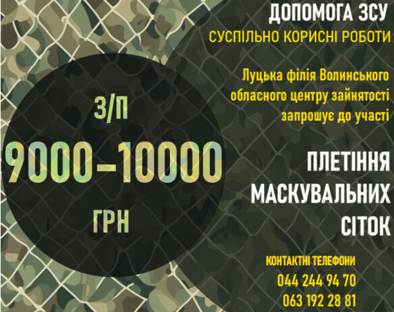 Лучан запрошують до участі в суспільно корисних роботах з плетіння маскувальних сіток для Збройних сил України.