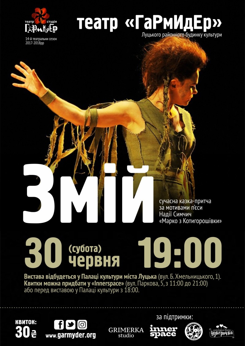 Приходьте 30 червня у Палац культури міста Луцька (вул. Б. Хмельницького, 1) о 19:00 і пориньте у фантастичний світ казки-притчі «Змій», – йдеться у повідомленні.
