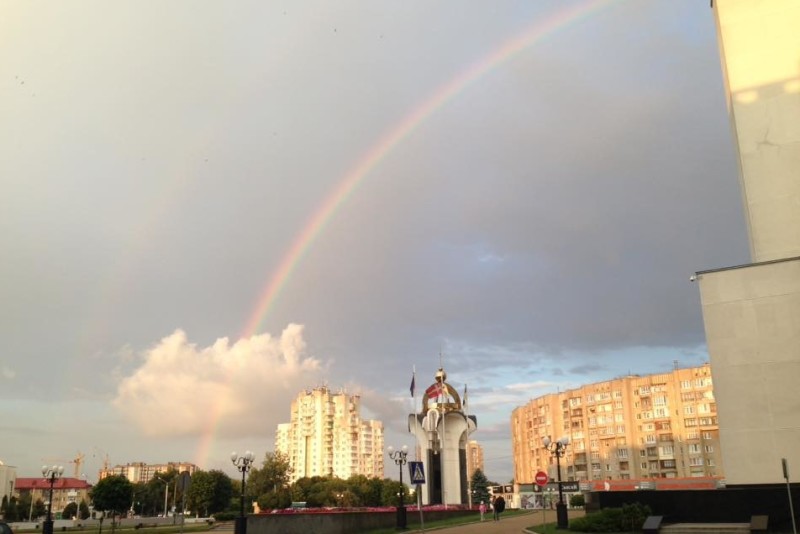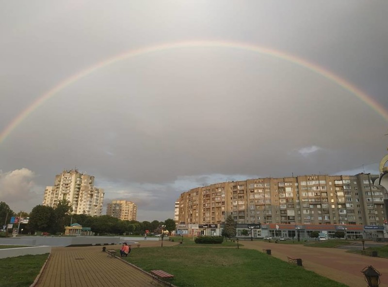 Користувачі соціальних мереж активно діляться фотографіями веселки у Луцьку після дощу 13 липня.