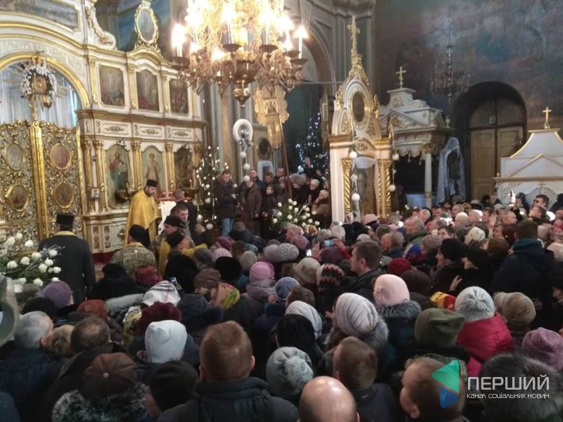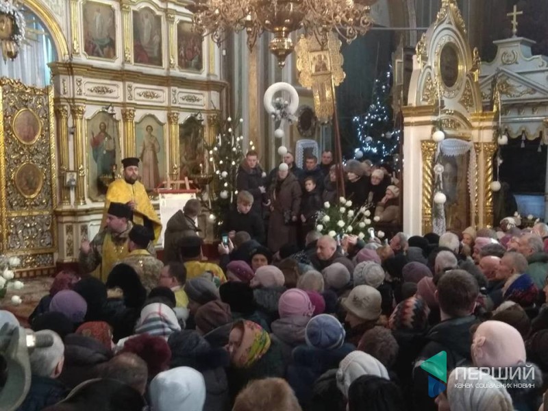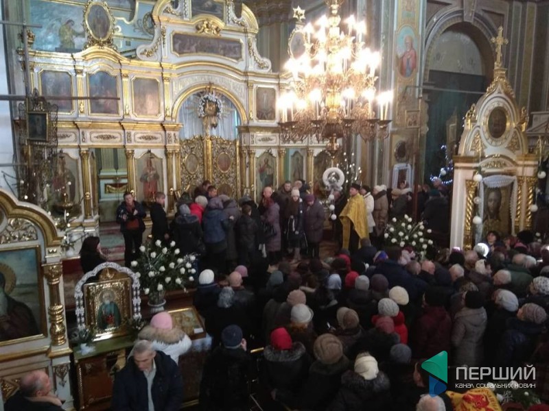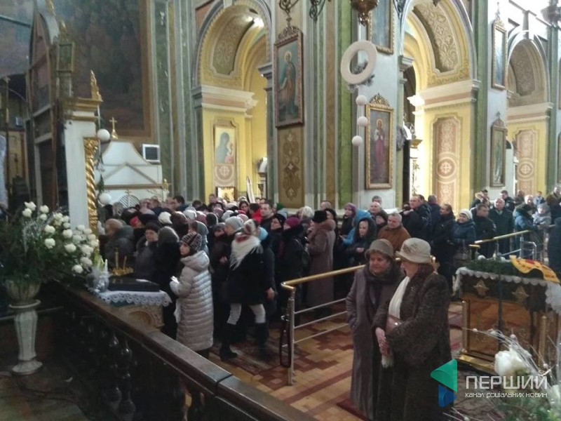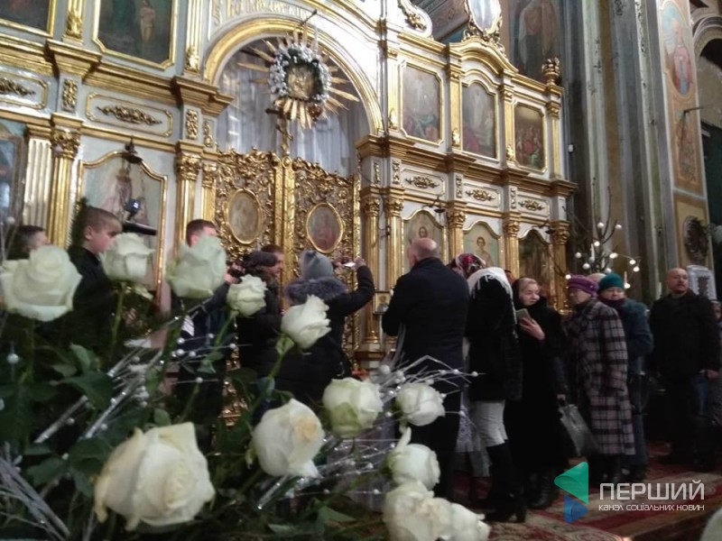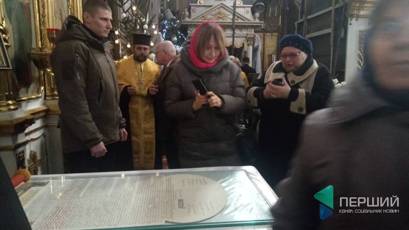 У луцькому Свято-Троїцькому соборі лучани фотографуються із Томосом про автокефалію Православної церкви України.
