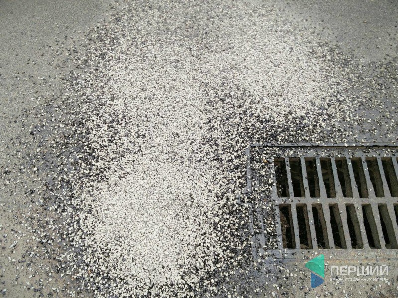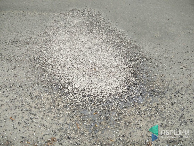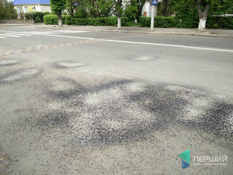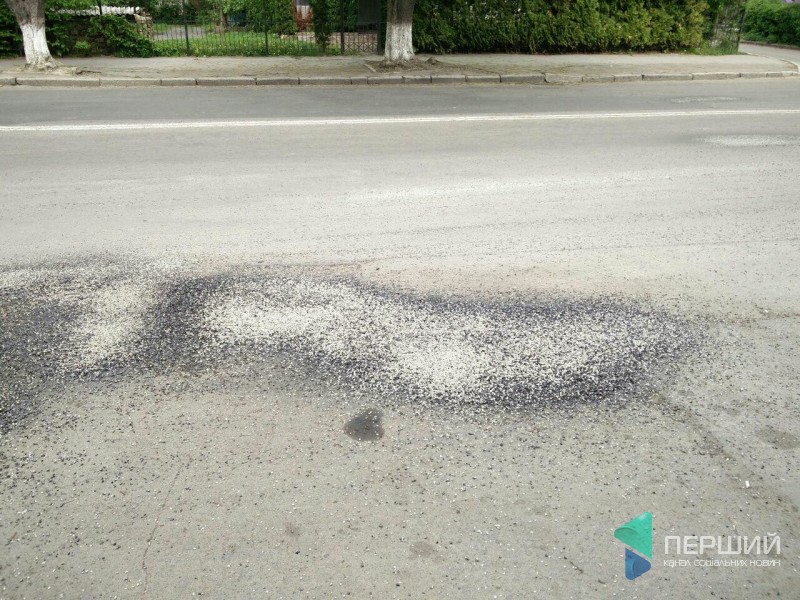 Через рух машин щебінь просто порозсипався по проїжджій частині, адже дорогу «полатали» з мінімальною кількістю смоли.